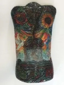 In his oeuvre, the artist frequently references his home state’s vegetation, land forms, weather, and Hispano-Catholic culture. Childhood influences also include a plethora of creative female relatives––a mother who sewed, an aunt who crocheted––and a brother who ran an upholstery shop. The dual nature of Dominguez’s objects, which inhabit the gray area between utility and art for art’s sake, reflects his personal experience as a New Mexican who studied ceramics in the Anglo-dominated East: whether we see “art” or “craft,” local Hispano or melting pot American depends completely on the immediate context. Dominguez has taught at the University of Nebraska– Lincoln since 1998.