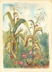 One of the many important artists to work in Columbus, Lamar Baker is best known for his vivid, frequently surrealist, depictions of Southern life. An Atlanta native, Baker moved to New York in 1935 to work and study, returning to Georgia to spend summers with family in Waverly Hall. During his years in New York, Southern life and scenery remained the focus of his art. In 1942, he won a Julius Rosenwald Fund fellowship that enabled him to travel through Mississippi and Louisiana. In August 1951, Baker settled near Columbus with his new wife, working for the Litho-Krome Company and teaching art classes.
